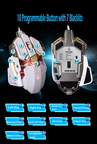 Mouse ottico per gamers, con 10 tasti programmabili, professionale, ad alta precisione, USB, con luci LED multi-modali.
