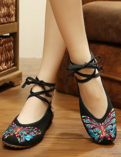Scarpe senza lacci ricamate a mano con farfalla e chiusura con lacci