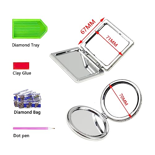 【Il Pacchetto Include】Otterrai 2 pezzi specchietti da borsa a in diverse e stili,1 pezzi cerchio,1 pezzi quadrato,che ti forniranno anche 2x penna per pittura a diamante,2x vassoio per gemme,2x colla per argilla,2x gemme colorate.