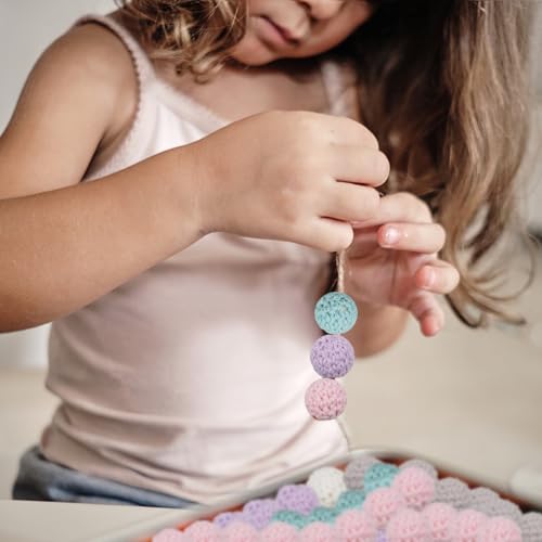 Materiale: queste perline colorate ricoperte di uncinetto sono realizzate con perline di legno e filati di lana di alta qualità, leggere, morbide e confortevoli al tatto, puoi mescolarle e abbinarle come vuoi per creare opere uniche eleganti e romantiche.