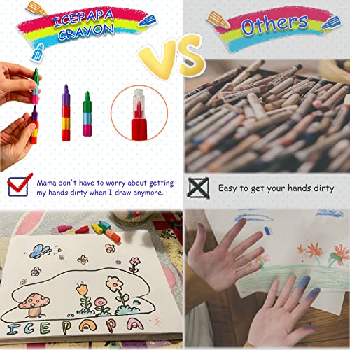 ICEPAPA, 21 PCS Pastelli a cera assemblabili e deformabili, Pastelli per Bambini impilabili, ideali come cancelleria creativa o regalini compleanno bambini invitati(7 colori in 1)