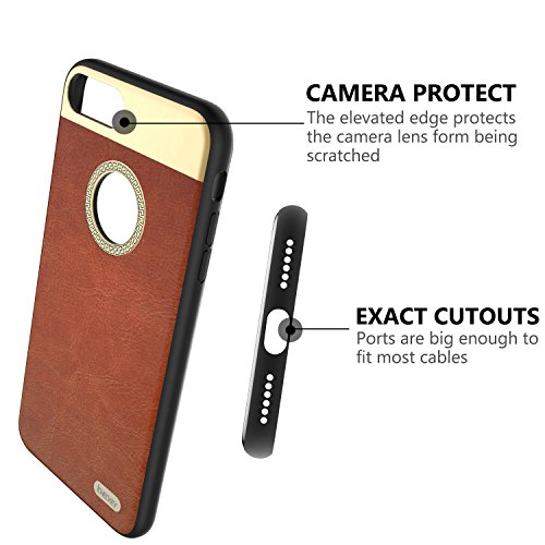 ICHECKEY iPhone 7 Case, Premium Leather Back Shock Absorbing Flexible TPU Bumper Soft Rugged Slim Cover Case for Apple iPhone 7 4.7 Inches (Brown)