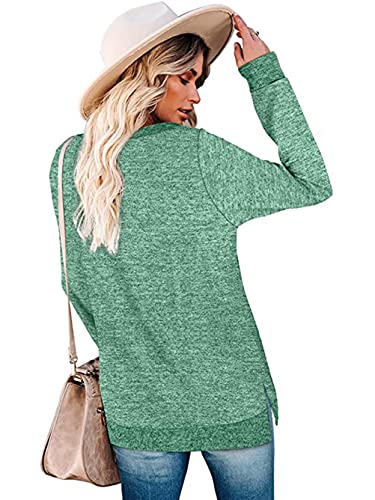 IChunhua - Maglie da donna a maniche lunghe, girocollo, a tinta unita, Verde, XXL