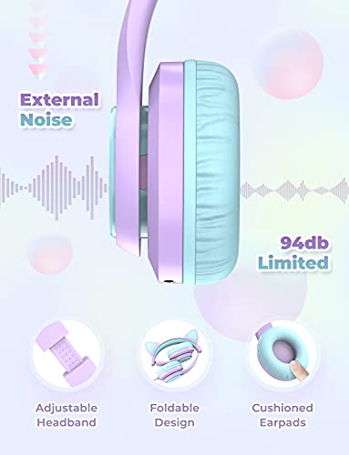IClever Cuffie per Bambini, HS20 Cat Ear Led Light Up, Cuffie Cablate con Microfono, Shareport, 94dB Volume Limitato, Cuffie Over-Ear Pieghevoli per Regali per Bambini/Scuola/Tablet/Viaggio