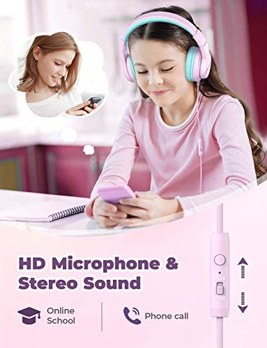 IClever HS19 Cuffie per Bambini Sopra l'Orecchio, Cuffie per Bambini Stereo HD con Microfono, Limitatore di Volume 85/94dB, Funzione di Condivisione, Cuffie Pieghevoli per Scuola/PC/Kindle