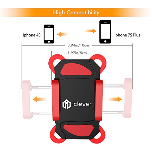 IClever IC-BM01 Supporto Porta Telefono per Biciclette, Morsa Universale per iOS, Android, GPS ed altri dispositivi, Colore Rosso