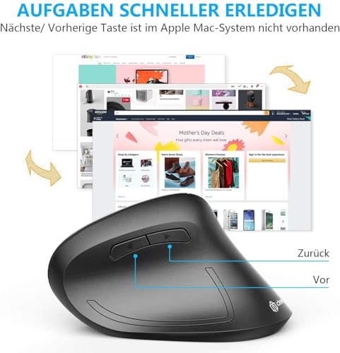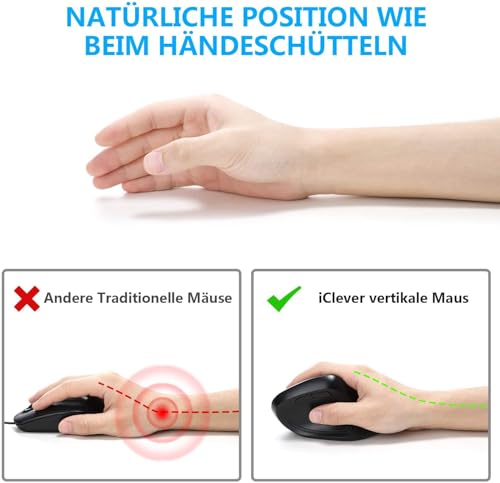IClever Mouse verticale Mouse senza fili ergonomico 6 pulsanti con DPI regolabile 1000/1600/2000/2400 Mouse ergonomico 2,4G comodo per laptop, computer, desktop, Mac, Windows, Mac OS