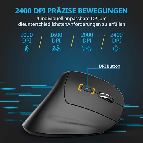 CONTROLLO DI ALTA PRECISIONE DEL MOUSE -Dotato di un sensore ottico da 2400 DPI, questo mouse ergonomico tiene traccia dei movimenti più delicati senza sforzo. Calcola accuratamente peso, stabilità e controllo su quasi tutte le superfici e può essere regolato tra 4 risoluzioni di 1000 DPI, 1600 DPI, 2000 DPI e 2400 DPI a seconda delle esigenze! Inoltre, passare da una modalità all'altra è semplice come fare click.