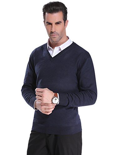 Caratteristiche: Maglione Uomo Invernali Casual pullover con scollo a V maglione a maniche lunghe, realizzato in 70% cotone, 30% misto acrilico, morbido e confortevole, scollo a V, tinta unita, orlo a costine, design classico e semplice, vestibilità slim, vestibilità perfetta per il tuo corpo.