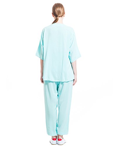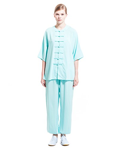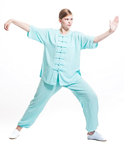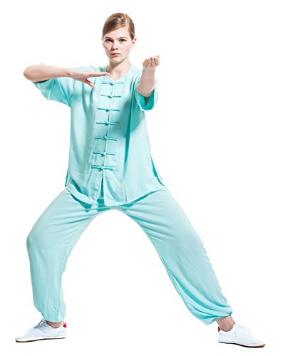 ICNBUYS Donna Tai Chi Uniform Cotone Mezza Manica Estate L Blu