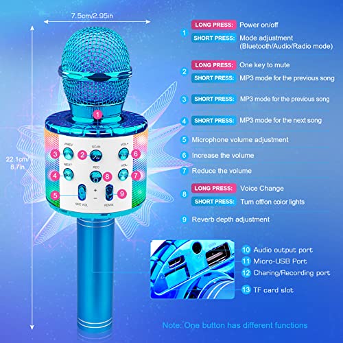 【Semplice da usare per i bambini】Basta premere a lungo il pulsante di accensione per accendere questo meraviglioso microfono. Anche senza connettersi al Bluetooth, questi 2 pacchetti di microfoni possono essere utilizzati come altoparlanti, facile da trasportare e condividere con famiglie e amici e cantare canzoni insieme ad altri, pieno di interattività.