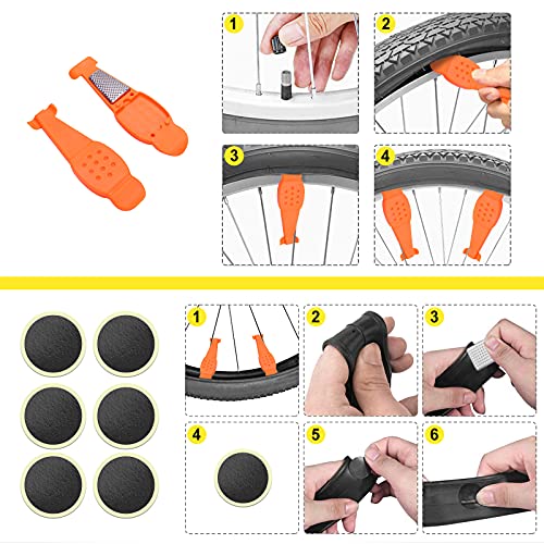 Icnow Pompa per Bici con Manometro,210 PSI Mini Pompa Bicicletta con Staffa di Montaggio, Viti, Ago a Sfera, Patch per Pneumatici,Leve per Pneumatici,Compatto, Resistente per Presta & Schrader