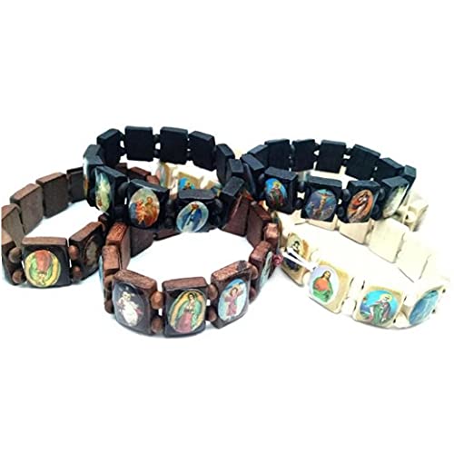 4pcs Icona di Legno Braccialetto Cattolico Gesù Mary Elastico Braccialetto Braccialetto Regalo per Gli Uomini Donne