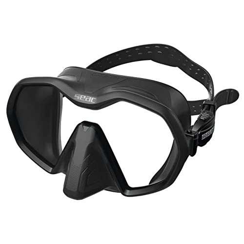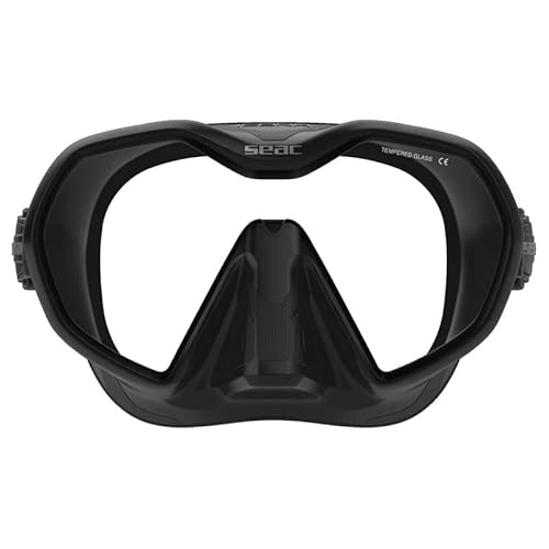 SEAC Icona, Maschera monolente Made in Italy per la Subacquea Realizzata con Tecnologia Frameless e facciale sovrastampato Unisex Adulto, Nero, Standard