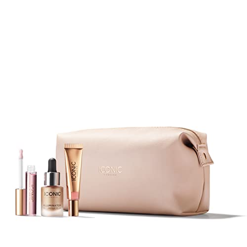 ICONIC London Set regalo con codice migliore vestito da donna | Olio per labbra Lustre Inc & Blush & Illuminator Trio per una finitura radiosa | 100% vegano e cruelty-free | Borsa per trucco oro gratuita | Valore £69, solo £46