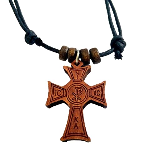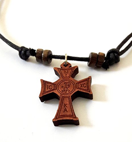 IconsGr Collana con ciondolo religioso greco cristiano ortodosso con croce di legno, 18