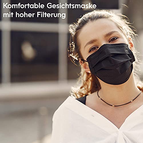 Mascherina nera monouso Ampiamente utilizzabile: può essere utilizzato in varie situazioni come pendolari, shopping, giardinaggio, brevi viaggi, guida, sport e all'aperto.