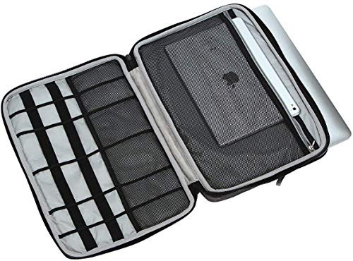 Design di borsa per accessori unico: Computer portatile e accessori in comparti separati. Il comparto per accessori ha una grande borsa a rete, può essere usato per riporre comodamente adattatori di alimentazione, mouse, blocco note ecc, il sacco elasticizzato può essere utilizato per contenere cavi, penne USB, Drive esterni USB, cellulari, caricabatterie, passaporti, contanti, cuffie ed altro.