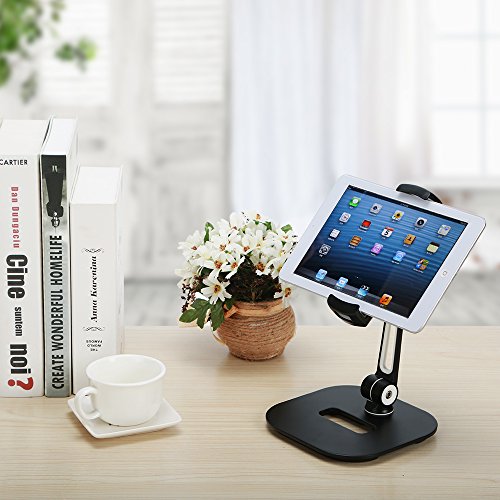 ICozzier Supporto Piegevole Con Rotazione a 360 Gradi in Lega di Alluminio per Pad/Supporto per Scrivanie/Supporto per Cellulari/Base di Sostegno Compatibile con iphone 7/ 7Plus/ 6/ 6S/ Computer Fra i 4-11 Pollici - Nero