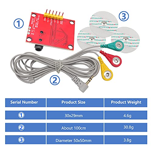 ICQUANZX ECG Modulo AD8232 ECG Misurazione di Frequenza Cardiaca Sensore Modulo Kit Sensore di Monitoraggio ECG per Arduino con Cavo Dupont