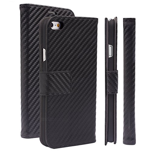 ICues Apple iPhone 6S / 6 (4,7 Pollici) Maraba Bag Carbon Black | Pelle Slot per schede Premium Stand Funzione del Basamento - Libro Libretto Busta Portafoglio Custodia Cover Case Tasca Borsa