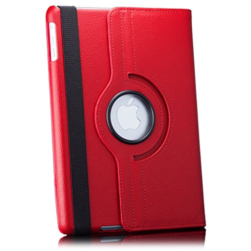 ICues AX104 360 - Custodia in Ecopelle comprensiva di Pellicola Protettiva per Display e Panno in Microfibra Compatibile con Apple iPad Air, Colore Nero Apple iPad Air Rosso