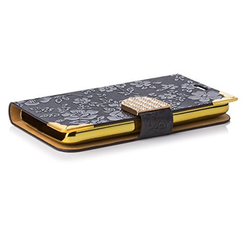 LG G2 Mini | iCues cromo fiori Bag Nero | [Screen protector Compresi] floreale strass Glitter Glitter lusso di Bling delle donne delle signore delle ragazze Chromebook incernierato manicotto protettivo tasca il cellulare sacchetto di aprire caso di vibrazione della c Custodia Cover Case Tasca Borsa
