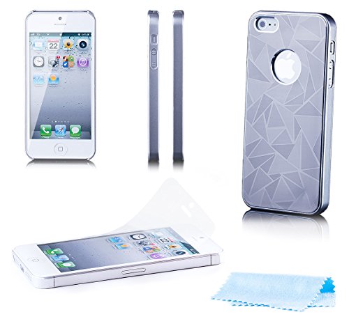La confezione include: iCues Delta lega di alluminio caso d'argento per Apple iPhone SE / 5S / 5 | Pellicola Protettiva Display | Panno in microfibra