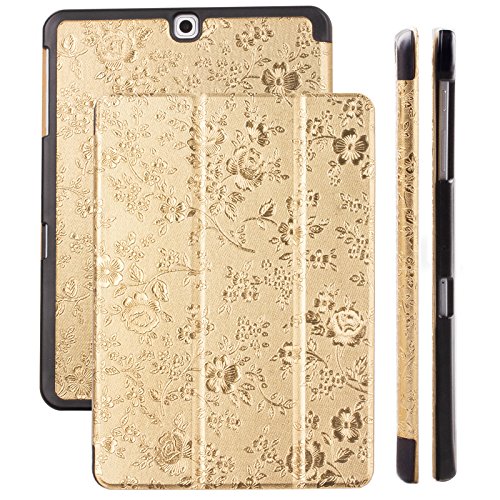 ICues Custodia Compatibile con Samsung Galaxy Tab S2 9.7 | Ancho Bag Bouquet Oro | Funzione Stand Premium Tribuna Luce in Pelle - Libro della Copertura di Caso Libretto Cover Case Tasca Borsa