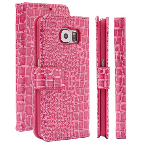 ICues Custodia Compatibile con Samsung Galaxy S6 | Tasca Maraba Caiman Rosa | del Basamento di Funzione Stand - Faux Libro incernierato del Coccodrillo Cover Case Tasca Borsa
