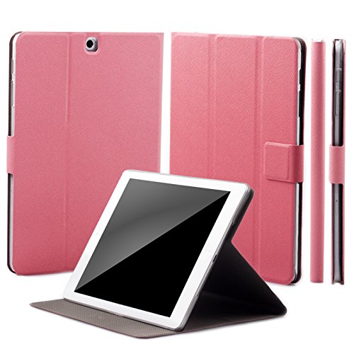 ICues Samsung Galaxy Tab S2 9.7 Manzano Bag | 360 Stand Funzione Hippo Rosa | Premium Stand Luce supplementare in Pelle Molto Sottile - Libro incernierato Custodia p Custodia Cover Case Tasca Borsa