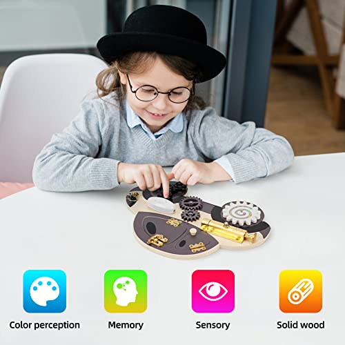 Icyant Tavola da Occupazione in Legno Giocattolo Montessori Tavola da Occupazione per Bambini con Serratura, Fermi, Giocattoli Educativi per Bambini di 3 Anni Che Imparano Le Abilità Motorie di Base