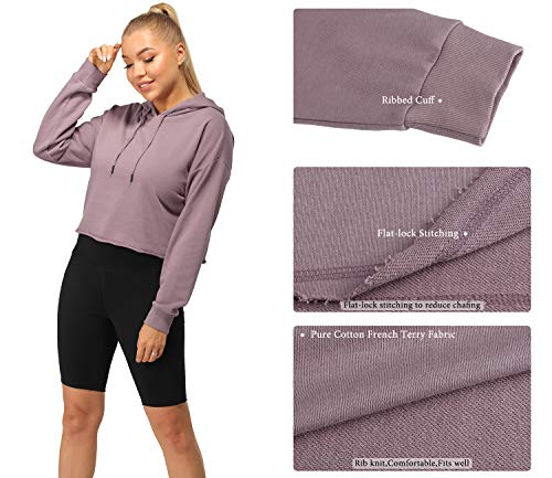 Icyzone Felpa con Cappuccio Donna Sportiva Manica Lunga Sciolta Cropped Hoodie per Autunno Inverno (L,Lilla)