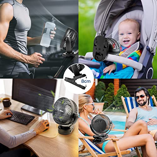 【3 VELOCITÀ DEL VENTO E ROTAZIONE A 720°】Il nostro ventilatore a clip ha 3 impostazioni di velocità del flusso d'aria, permettendoti di regolarlo secondo le tue esigenze. La confortevole prima marcia è adatta per dormire, la seconda marcia per il lavoro e lo studio, e la fresca terza marcia per il tempo libero all'aperto. Supporta la rotazione completa a 720°, così puoi ottenere un flusso d'aria fresco e fresco da diverse direzioni.