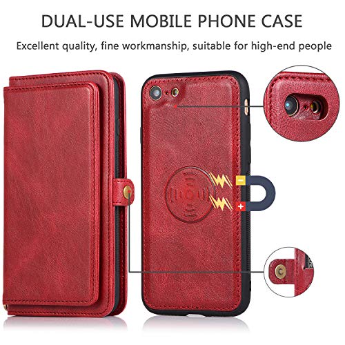 Idatog Cover per iPhone SE 2020 /iPhone 8/7 (4,7 Pollici), Flip Case in Pelle PU Premium Custodia Wallet Case 2 in 1 Rimovibile Custodia Portafoglio Magnetica Cover con 5 Slot per Schede (Rosso)