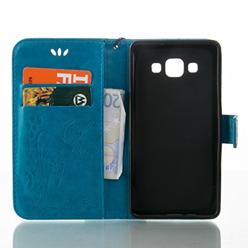 Idatog Custodia a libro per HTC Desire 626, con protezione per lo schermo in vetro temperato, chiusura magnetica, alta qualità, stile classico ed elegante, colorata, tema: farfalla, in pelle PU, con funzione di supporto e slot per carta di credito, perfetta per il vostro smartphone, Similpelle, Blue, Samsung Galaxy Core Plus G350