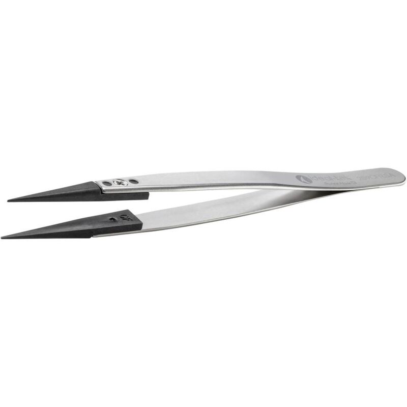 Dettagli tecnici Caratteristiche pinza Punta sostituibile Dimensione del prodotto, larghezza 10 mm Dimensione del prodotto, lunghezza 130 mm Dimensioni (L x L) 130 mm x 10 mm Materiale Acciaio inox, Plastica Proprietà del materiale antiruggine, Antimagnetica, resistente agli acidi Tipo prodotto Pinzetta Pinzetta in plastica con punta sostituibile - fibra di carbonio - punte: Dritte, fini, appuntite, resistenti (A259CF). LUNGHEZZA: 130 mm - 5,12. Sicurezza ESD Le pinzette in plastica tipo 259CF con punta sostituibile sono adatte per le applicazioni in cui è necessario tenere saldamente un piccolo componente. La plastica ESD rinforzata con fibre di carbonio conferisce alle pinzette proprietà ESD e antigraffio. Testo tradotto automaticamente Caratteristiche A prova di ESD 10^2 Ohm 3 punti di allineamento Sostituzione semplice e rapida
