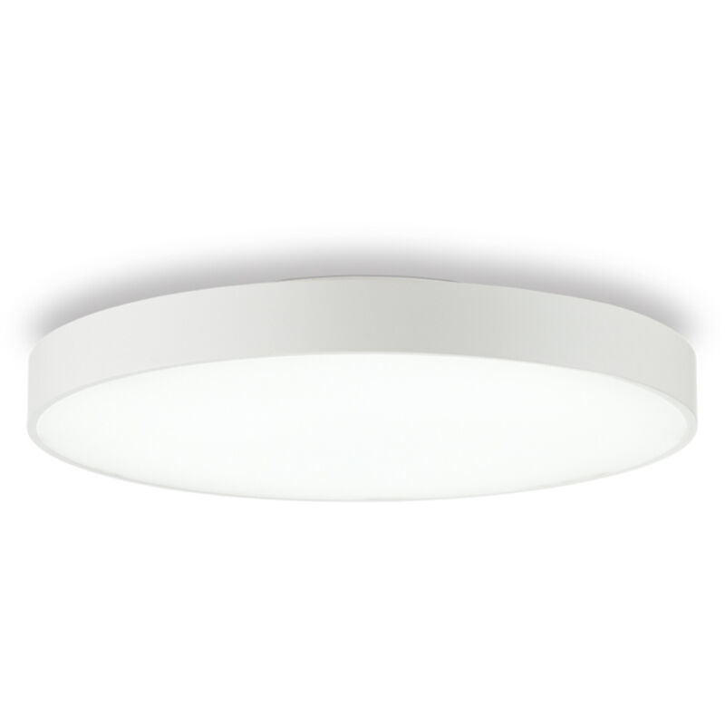 Base e corpo luce in alluminio verniciato a polveri. Diffusore in materiale plastico color opale. Sorgente luminosa a led integrati. Ø 600 x H 90 mm 46W 35000 h 3000 K 5950 lumen IP:20