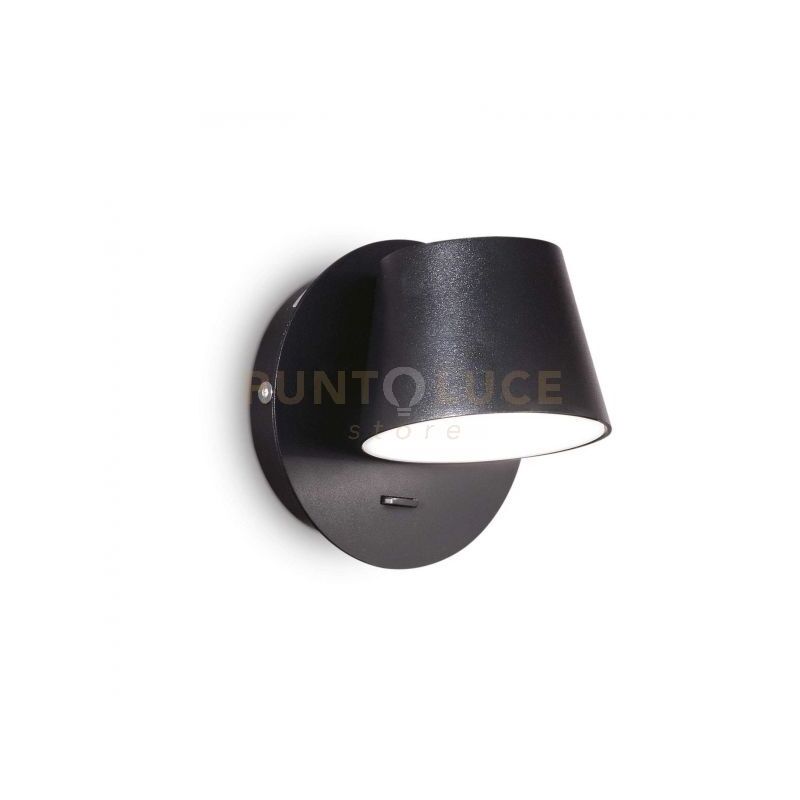 Applique con montatura in alluminio verniciato a polveri. Diffusore ruotabile con schermo in acrilico satinato. Interruttore incorporato e LED integrati