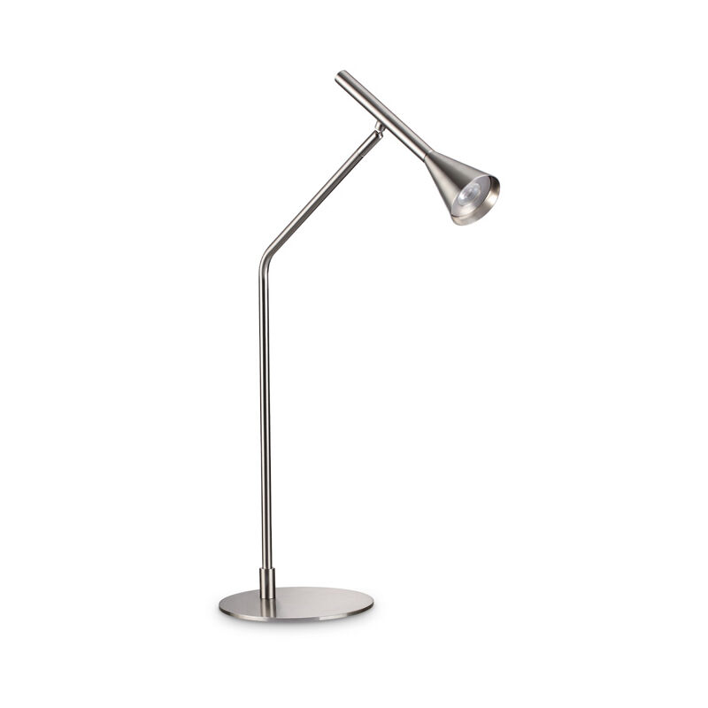Collezione Diesis ELEGANTI E MINIMAL Lampada da tavolo moderna LED con montatura in metallo placcato nickel satinato..