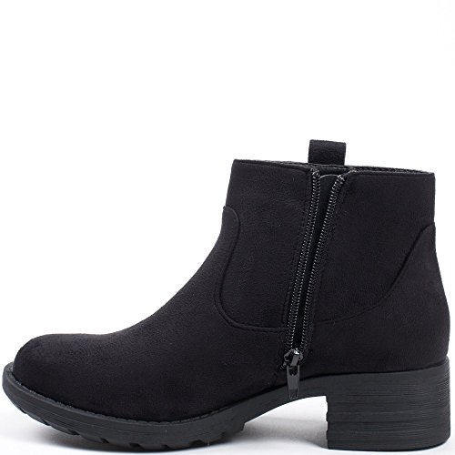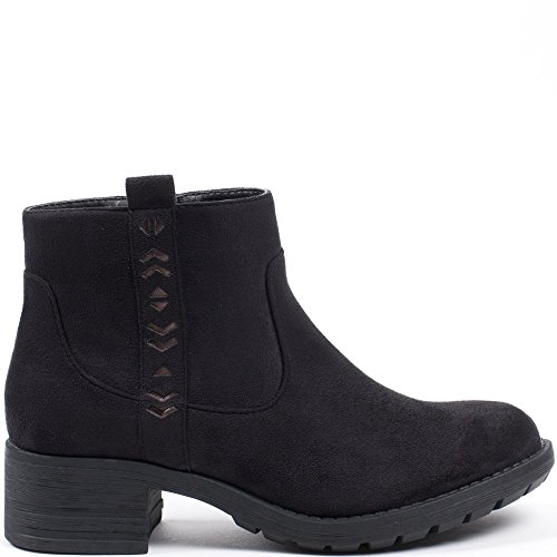 Ideal Shoes Scarponcini Effetto camoscio con Parte Traforata Daila, Nero (Nero), 39