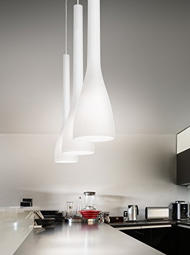 Ideal Lux Flut SP1 Small, Lampada Soffitto, Vetro Soffiato, con Cavo Regolabile Dispositivo Automatico, max 1 x 40W E14 / 240V, Bianco, fluorescente compacte (cfl), metallo