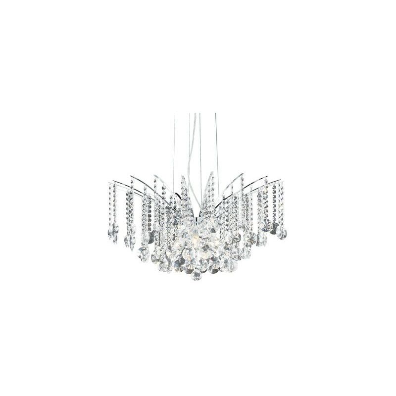 Montatura e portalampade in metallo cromato. Pendagli ottagonali e tondi in cristallo molato. Sospensioni con cavi in acciaio a lunghezza regolabile da dispositivi automatici. Ø 650 x H min 55 / max 110 cm max 8 x 40W G9 IP:20