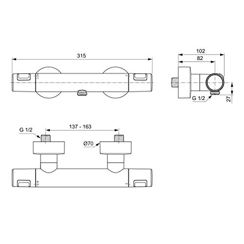 Ideal Standard A7201AA Ceratherm t25 Miscelatore termostatico esterno per doccia, cromo