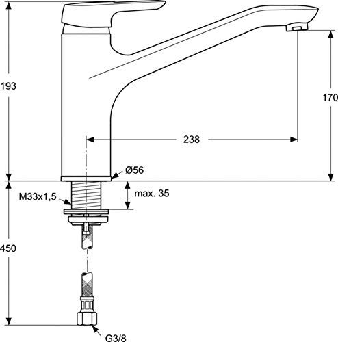 Ideal Standard B9495AA Ceramix Blue Miscelatore Cucina mocomando da appoggio su lavello, cromato