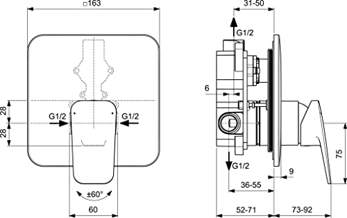 Ideal Standard - Ceraplan Miscelatore monocomando ad incasso per doccia, solo parti esterne - senza accessori doccia - Colore Cromato