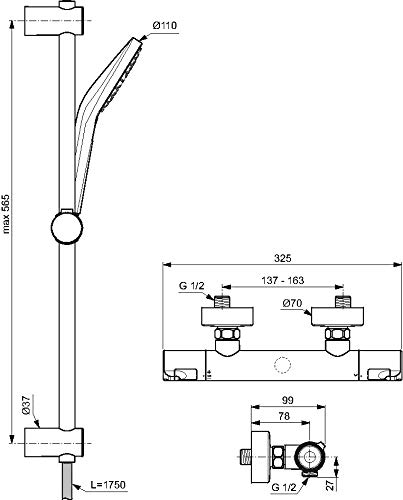Ideal Standard - Ceratherm T50, Kit doccia con miscelatore termostatico, Set saliscendi doccia, Cromato