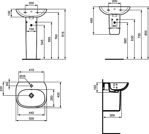 Ideal Standard T351801 TESI semicolonna per lavabo, colore bianco