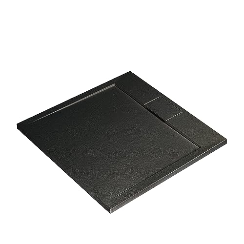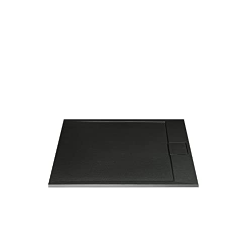 Ideal Standard - Ultra Flat S i.life, Piatto doccia quadrato 70x70 in resina, Piletta con scarico nascosto, Finitura opaca effetto pietra, Nero