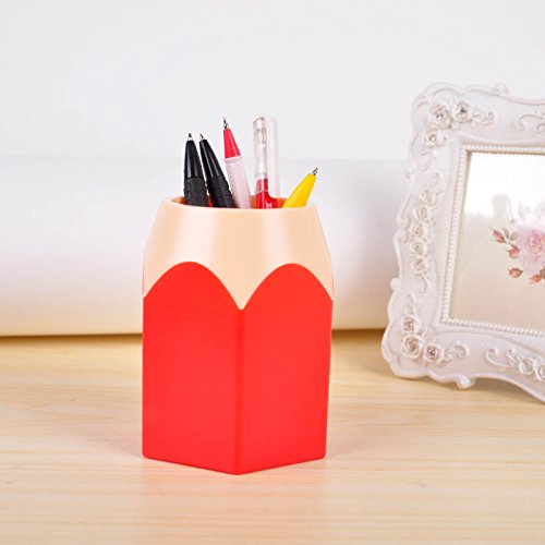 IDealhere(TM) 1pc Penna Portapenne Titolare Legno Pot Cancelleria Container Ufficio (Rosso)